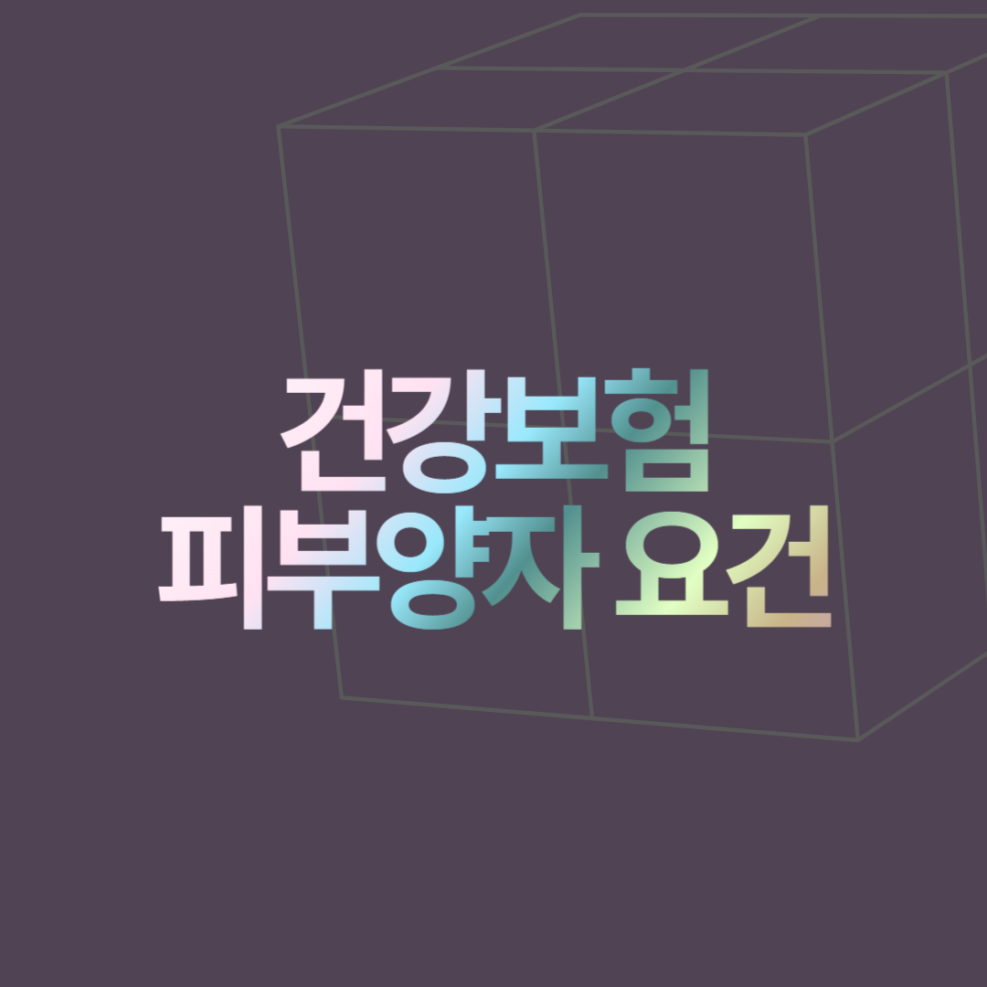 | 부양 요건 | - 직장가입자의 배우자 - 직장가입자의 직계존속 (부모, 조부모 등) - 직장가입자의 직계비속 (자녀, 손자녀 등) 및 그 배우자 - 직장가입자의 형제·자매 (추가 요건 필요) |