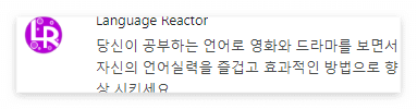위에서 소개한 확장 프로그램은 바로 '랭귀지 리액터(Language Reator)'입니다.