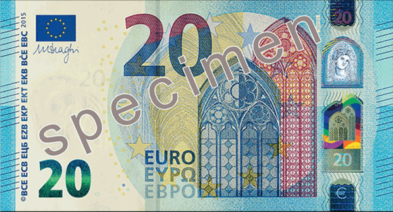 유로화의 도안은 다른 나라처럼 특정 나라의 위인이 아니고 (여러 국가가 포함되어 있다보니) 연합 국가를 통합하자는 취지에서 유럽의 7대 건축 문화 양식이 그려져 있습니다(실제 건축물은 아님).