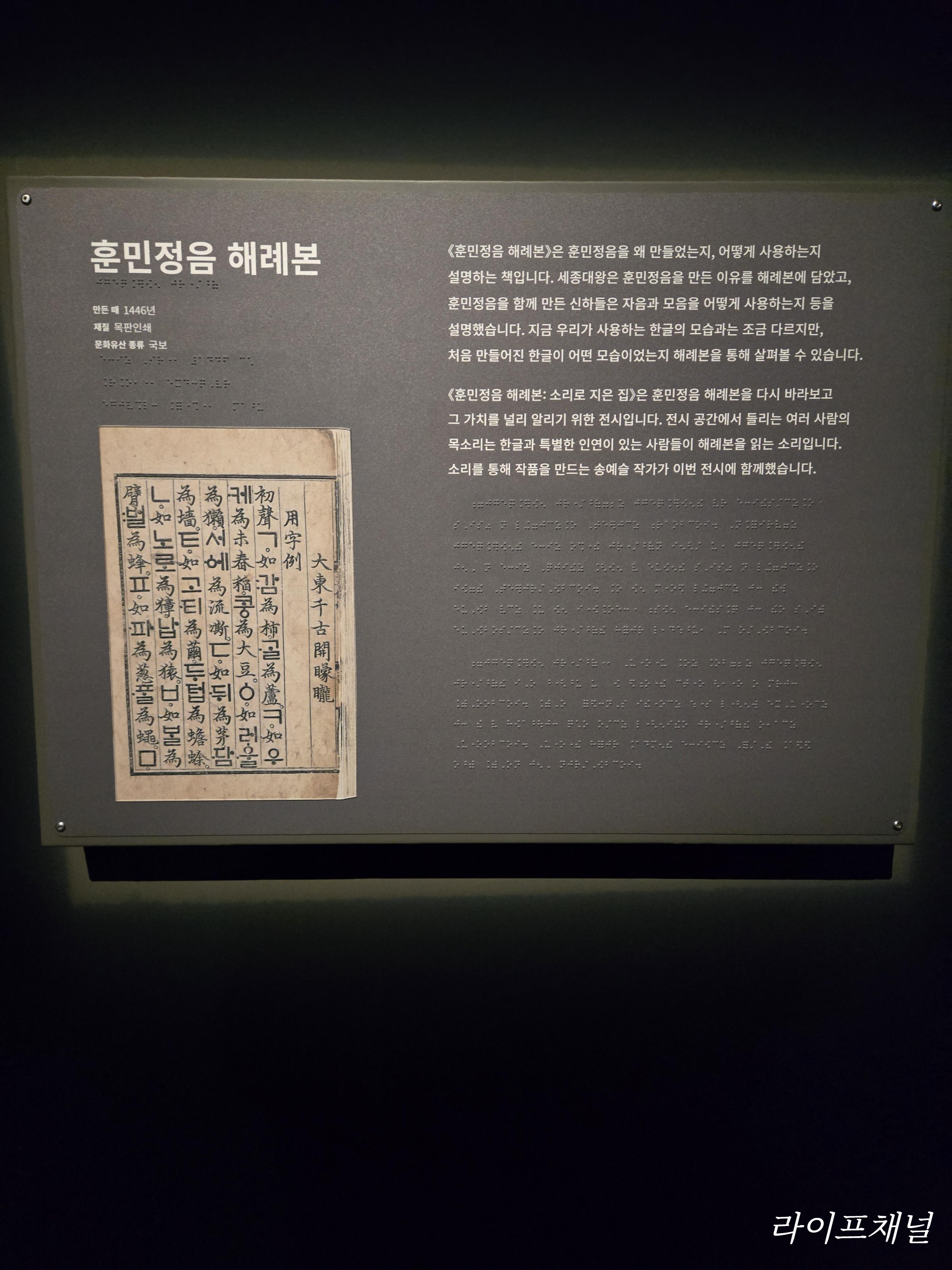 훈민정음 해례본에 적힌 한글은 사실 지금 쓰는 것과 거리가 있고 한자도 많아서 내용을 알아보긴 힘들었지만 실제로 보는 것만으로도 영광이었습니다.