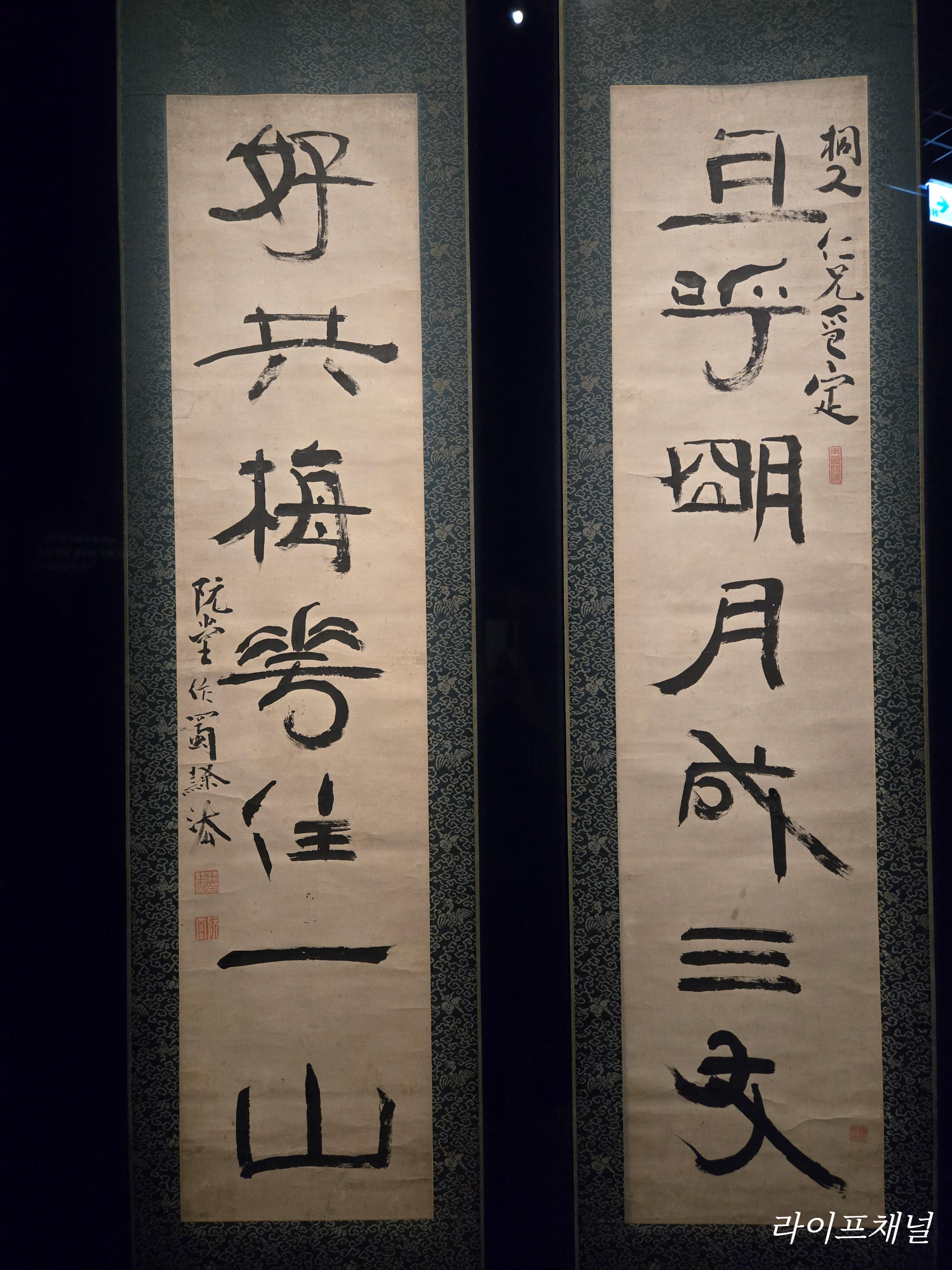 지하 1층 3전시실로 내려가면 도자기 및 불교미술 전시실이 있는데 전시실 초입에는 서예 작품도 많이 걸려있습니다.