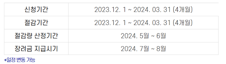 - 특정 기간 동안의 가스 사용량(2023.12.1~2024.3.31)이 기준 사용량(전년 동기 대비 사용량)보다 낮을 경우, 차이에 비례하여 일정 금액이 캐시백으로 제공됩니다.