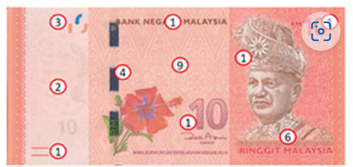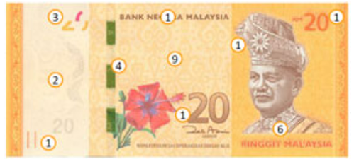 현재 이용되는 지폐는 2012년에 발행된 4차 시리즈이나, 1998년에 발행된(말레이시아 국립 은행 기준 1996년) 3차 지폐도 통용가능합니다.