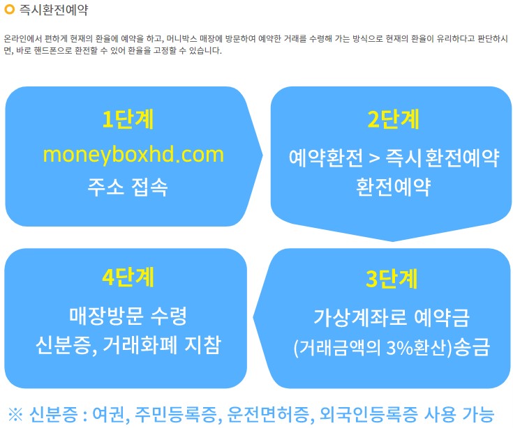 사설 환전소 중 전국적인 체인을 가지고 있는 머니박스의 이용 방법과 특징에 대해 알아보겠습니다.