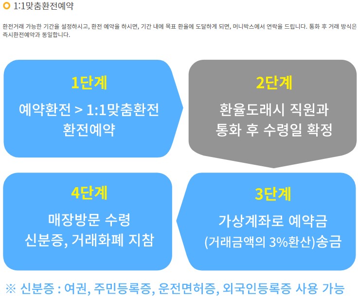 • 1:1맞춤환전예약(원하는 환율을 사전에 알려주면 머니박스에서 콜백)