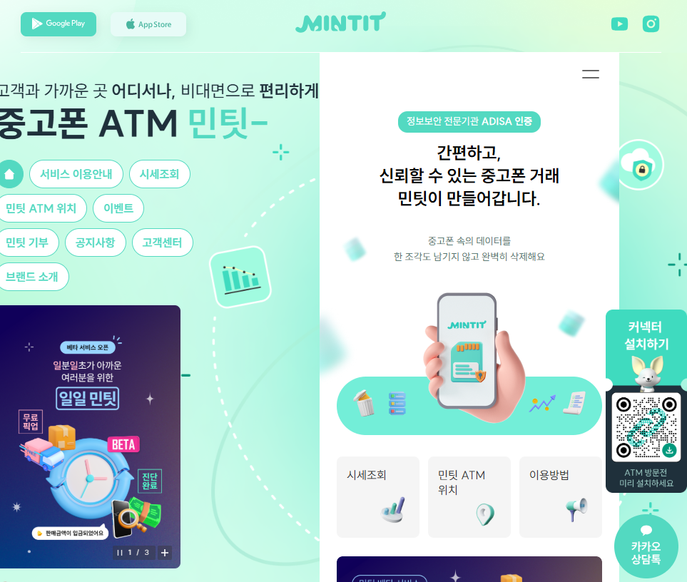 전국 6,600개의 민팃ATM에서 편하고 안전하게 중고폰 판매하고, 개인정보 삭제 인증서까지 받아보자!