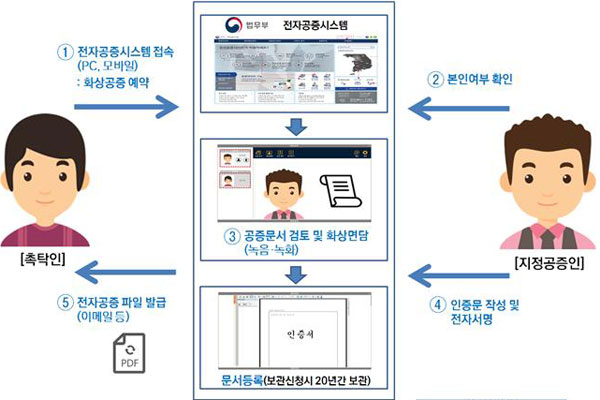 화상공증은 다음과 같은 절차로 이루어집니다.