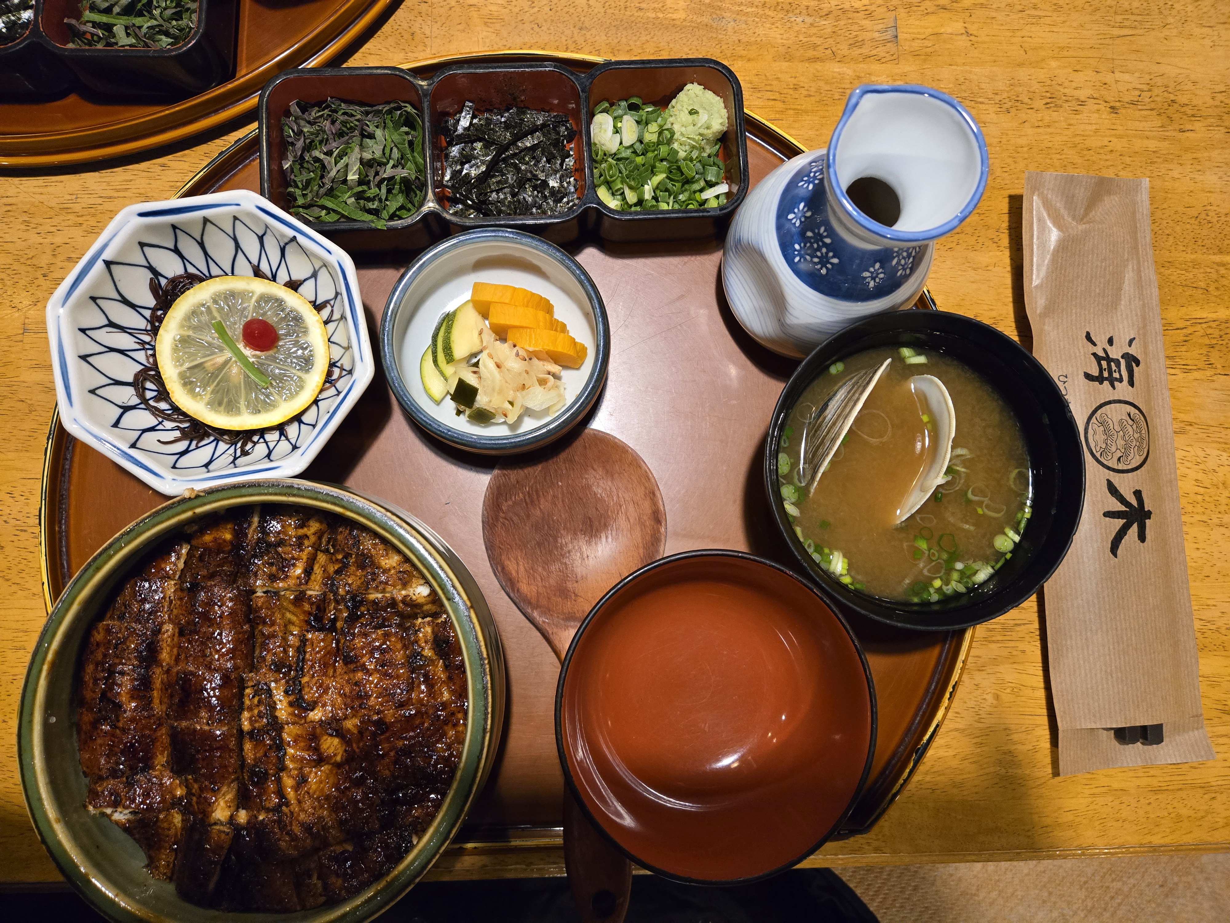 밥 위를 가득 덮는 장어구이가 인상적이었습니다. 옆의 그릇은 덜어먹는 용, 오른쪽의 장국도 맛있습니다.