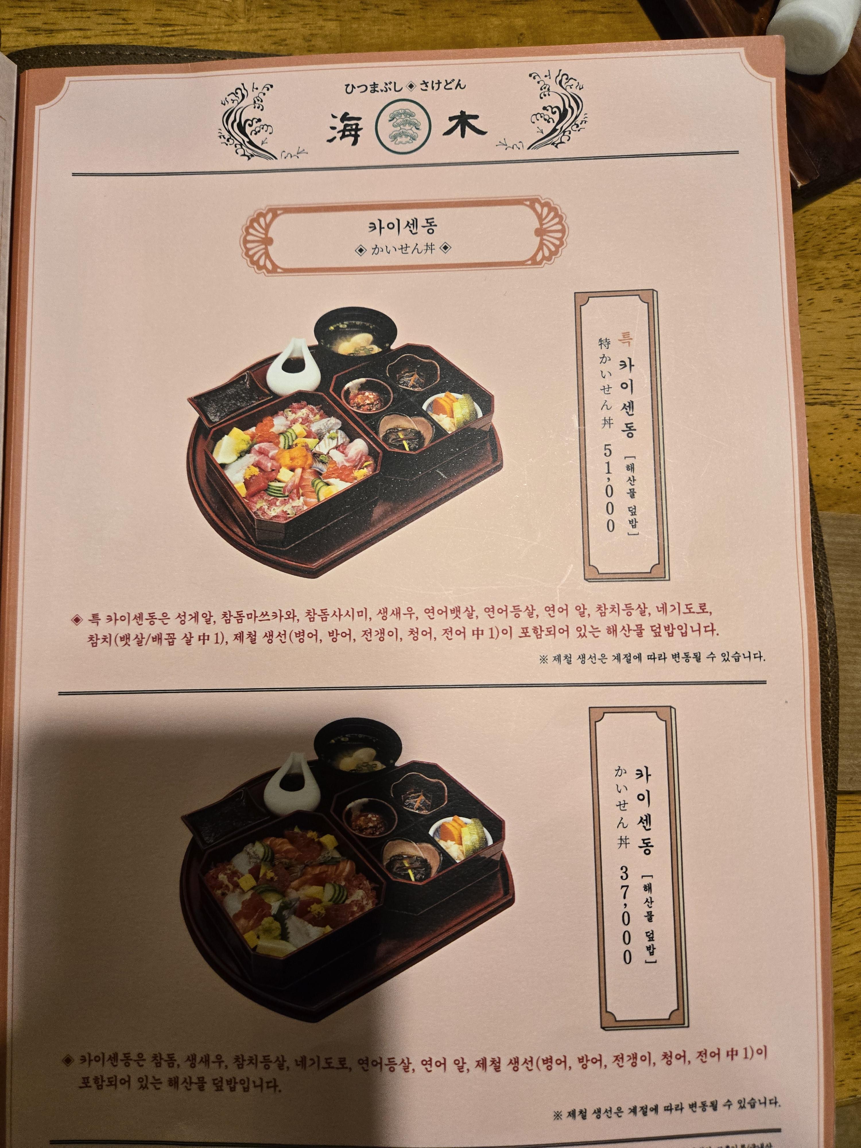 오시는 분들 8~90프로가 히츠마부시를 시키고 카이센동도 제법 시키는 것 같았습니다. 카이센동은 해산물덮밥입니다.
