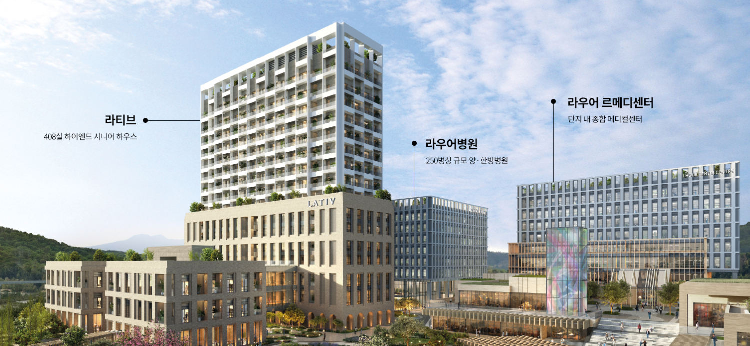 라티브는 한화건설에서 시공하고 GS자이 S&D의 위탁관리, 롯데호텔의 컨시어지 서비스가 적용되는 곳으로, 하이엔드 시니어 하우스인 '라티브'를 비롯해 시니어 레지던스인 '라우어', 양한방 협진병원인 라우어병원, 종합 메디컬센터인 '라우어 르메디 센터', 상업시설인 '라우어 애비뉴' 등으로 구성되어 있습니다.