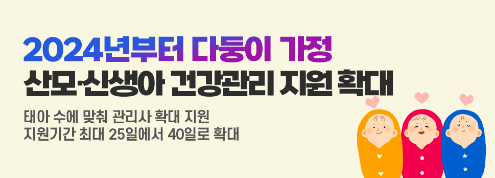이제 세쌍둥이 이상 가정에서는 신생아 수에 맞춰 추가적인 건강 관리사를 지원받을 수 있습니다.