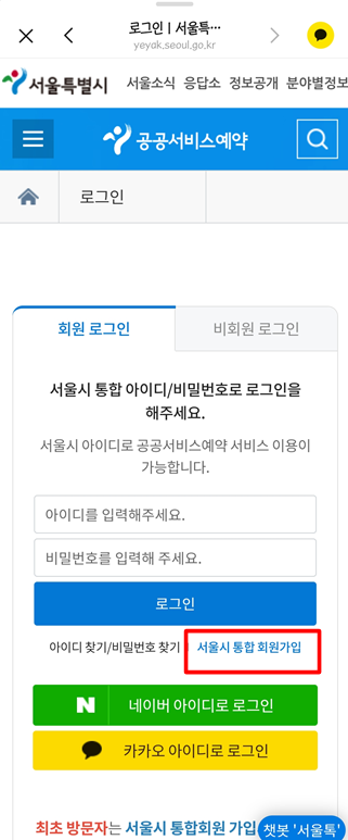 따라서 처음부터 "서울시 통합 회원가입"으로 진행하는 것이 좋습니다.