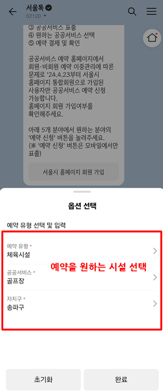 서울시 공공서비스예약 "서울톡" 예약 방법 화면 안내 | 파크골프장 온라인 예약방법