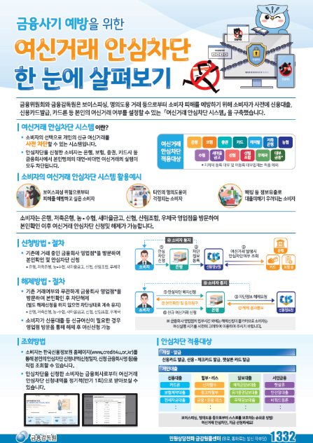 여신거래 안심차단 서비스는 보이스피싱, 명의도용 등 금융사기로부터 소비자를 보호하기 위해 금융위원회와 금융감독원이 도입한 제도입니다. 개인의 신규 여신거래(대출, 신용카드 발급 등)를 사전에 차단할 수 있는 서비스로, 아래는 신청 방법에 대한 안내입니다.