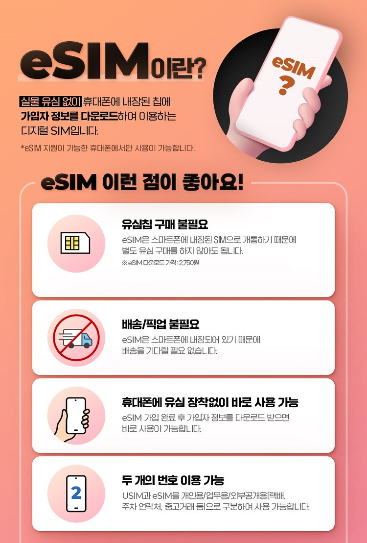 - eSIM 가입비 무료 이벤트 진행 중.