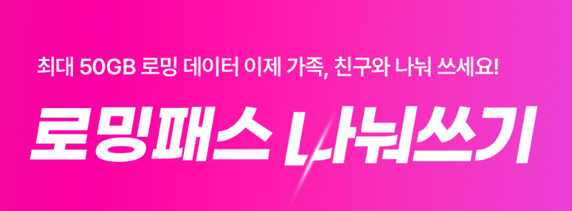 - 예: 50GB 로밍패스 가입 시, 49명과 1GB씩 나눠 사용 가능