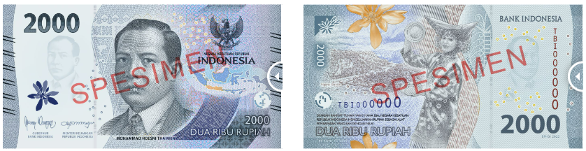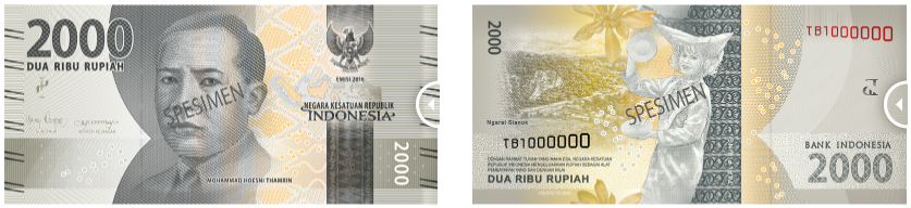 인도네시아는 지폐 개정이 자주 있는 나라 중 하나로, 여러번의 화폐 개혁을 거쳐 현재는 3기 화폐의 10차 버전이 2022년부터 유통을 시작하였고, 2016년에 발행한 3기 9차 화폐와 함께 통용됩니다.