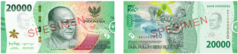 앞면의 인물은 대부분 인도네시아의 '국가영웅'의 초상인데, 인도네시아의 국가영웅 칭호는 인도네시아의 독립이나 발전에 크게 기여한 인물을 대상으로 정부에서 수여하는 명예로운 칭호입니다.
