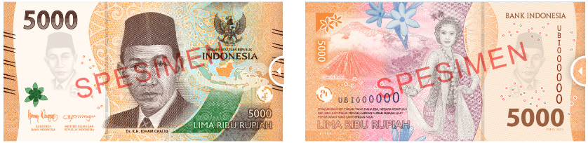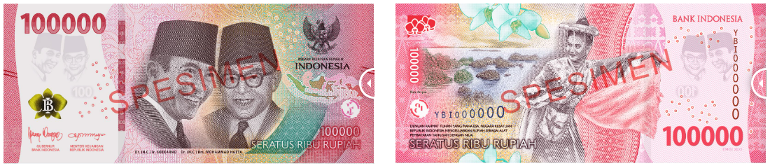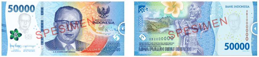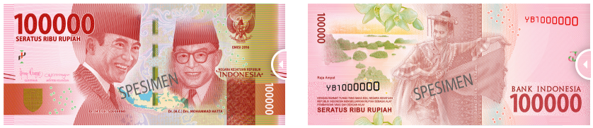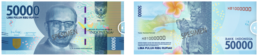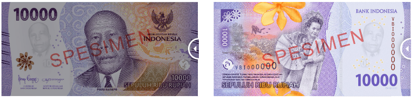 인도네시아는 지폐 개정이 자주 있는 나라 중 하나로, 여러번의 화폐 개혁을 거쳐 현재는 3기 화폐의 10차 버전이 2022년부터 유통을 시작하였고, 2016년에 발행한 3기 9차 화폐와 함께 통용됩니다.