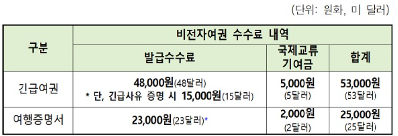 - 종류: 일반여권, 관용·외교관여권 외에 새로 신설된 단수여권(유효기간 1년 이내).