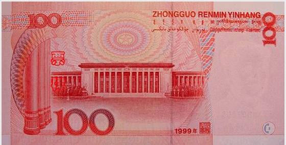100위안의 경우 1999년에 발행된 초기 지폐가 가장 많이 보이는데(아래 사진) 앞면은 마오쩌둥의 초상, 뒷면은 인민대회당 건물이 그려져있습니다.
