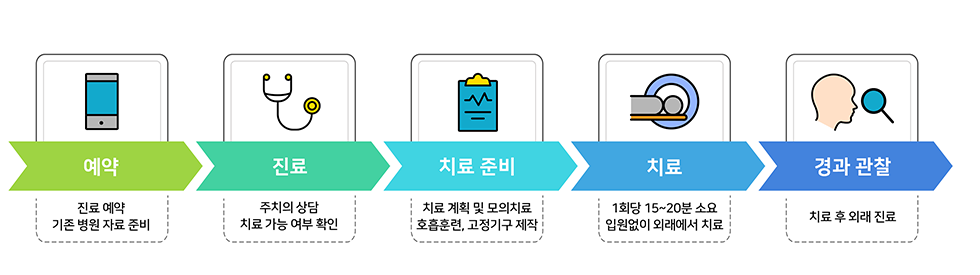 현재 중입자 치료를 개시한 연세대 암센터의 경우 다음과 같은 치료 과정을 거치는데, 2022년 말부터 각종 언론을 통해 중입자 치료가 보도된 이후 하루 평균 150여 통의 치료 문의 전화가 온다고 합니다.
