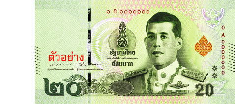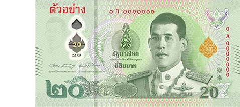 가장 최근에 발행된 지폐는 2022년에 발행된 20바트권 지폐로 기존의 면소재 지폐와 다르게 폴리머 재질(플라스틱)의 지폐로 제작되었습니다.