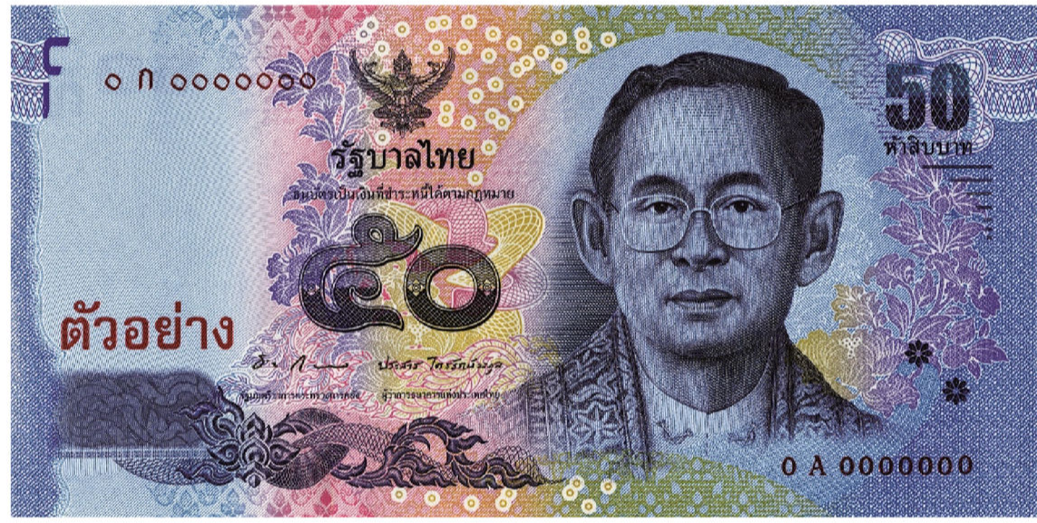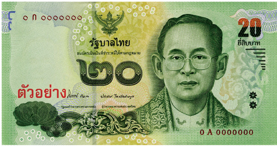 가장 최근에 발행된 지폐는 2022년에 발행된 20바트권 지폐로 기존의 면소재 지폐와 다르게 폴리머 재질(플라스틱)의 지폐로 제작되었습니다.
