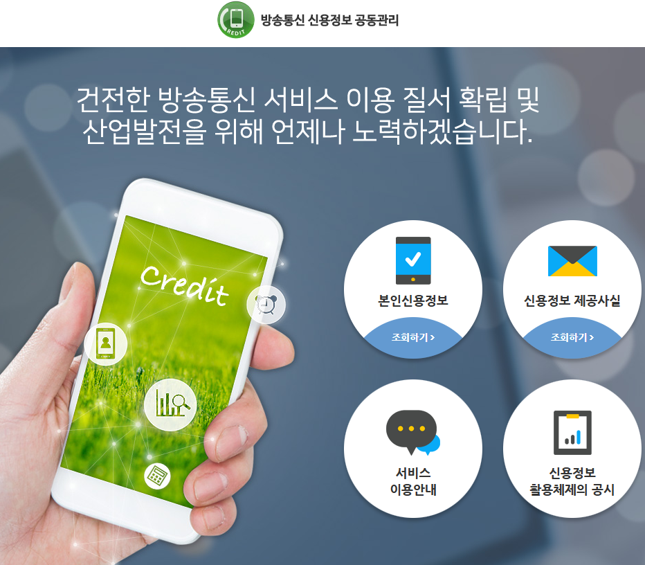 - 방송통신 신용정보 공동관리 홈페이지에서 본인 신용정보 조회