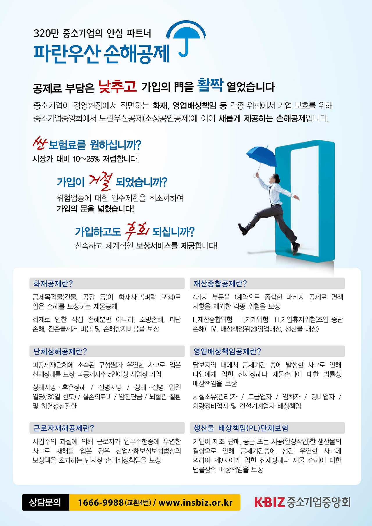 노란우산공제로 유명한 중소기업중앙회에서 출시한 손해공제인 '파란우산 손해공제'에 대해 정리해 보겠습니다.