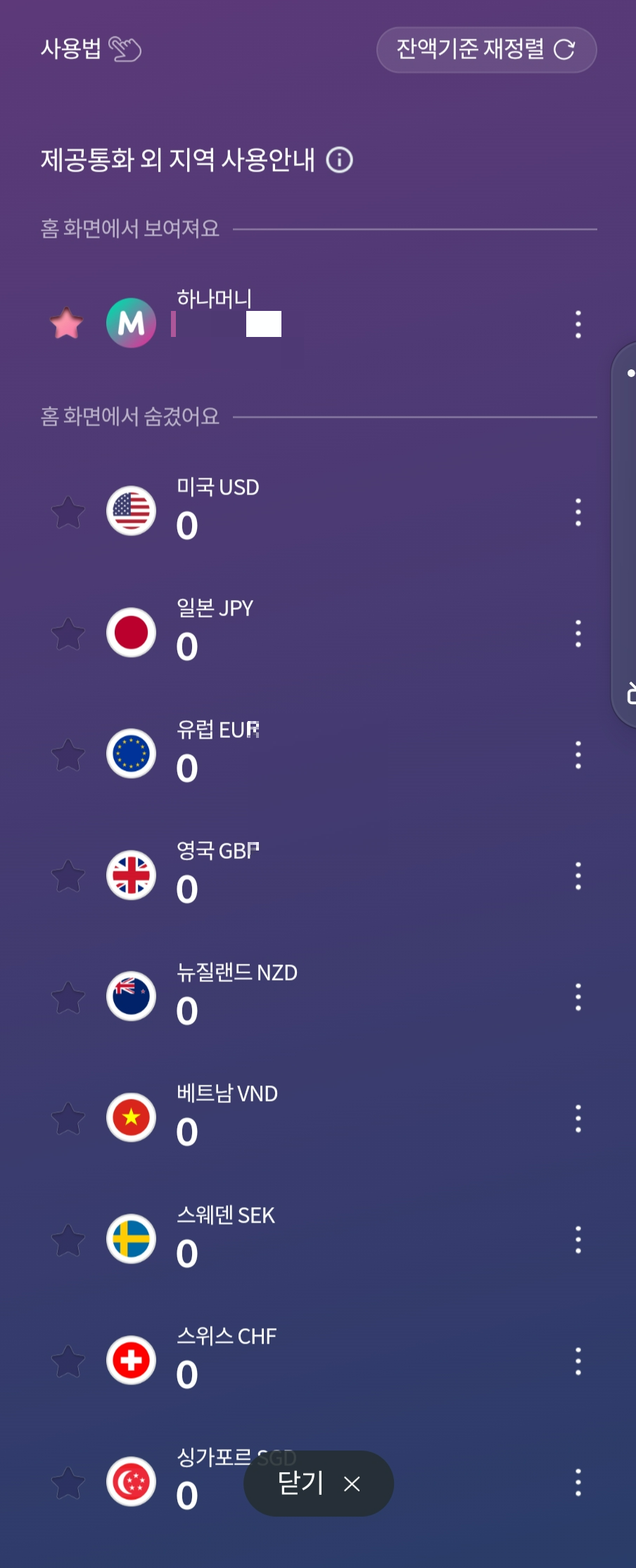 ① 카드를 수령하면 외화 충전을 위해 하나머니를 먼저 충전합니다.