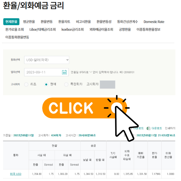 ▦ 외국통화 현찰 살 때 : 현찰 매도율