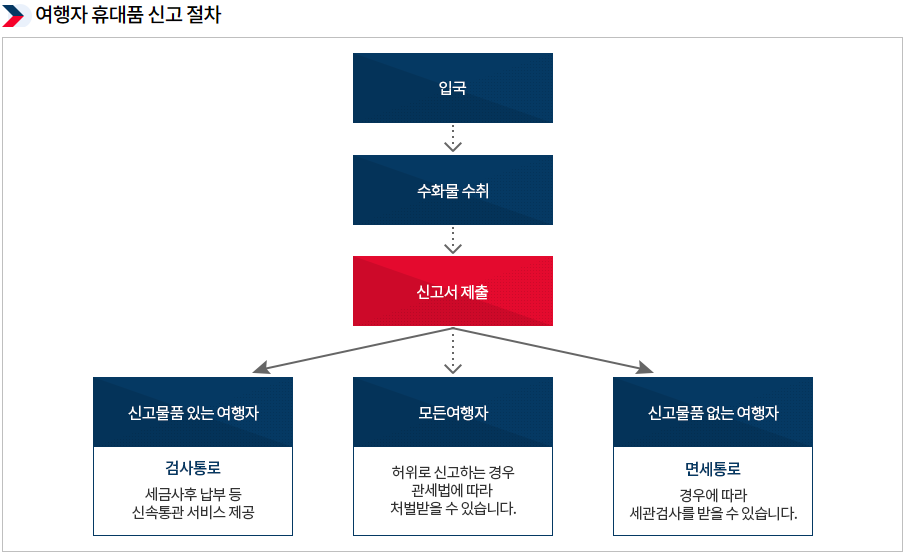 최근에는 인천국제공항 제2터미널이나 김포공항의 경우, 관세청 '여행자 세관신고' 앱을 이용하여 신고/하실 수도 있습니다.