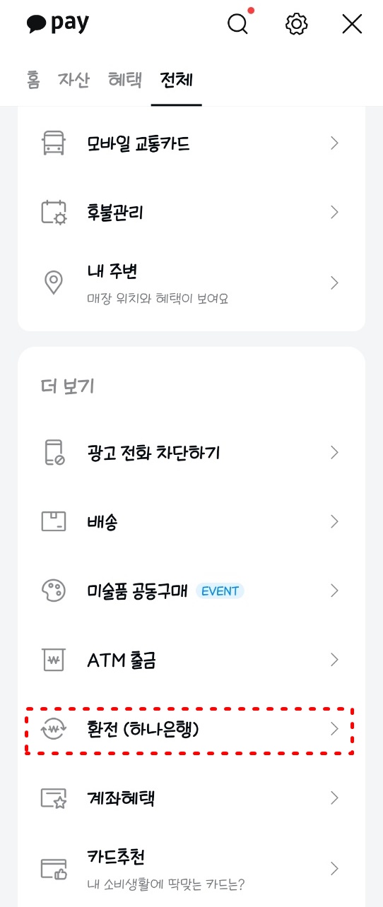 - 카카오페이 연결 내 은행 계좌에서 출금하여 환전