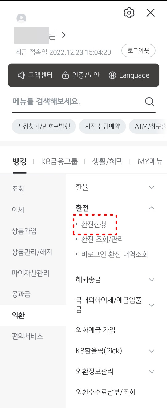 - KB국민은행 통장에서 출금되어 환전(이체 한도 확인 필요)
