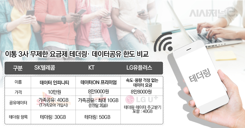 휴대폰 테더링 요금제 비교 SKT KT LGU+ 테더링 요금제 비교