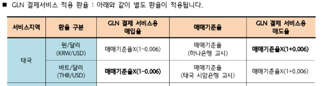 GLN의 적용 환율 및 수수료