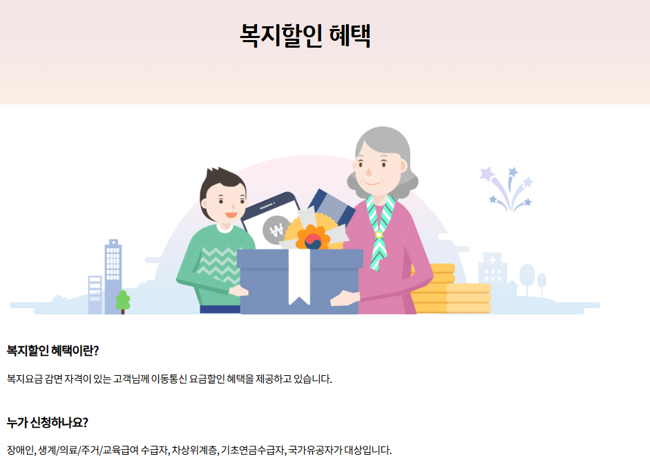 SK텔레콤 복지요금 할인제도(기초연금, 장애인, 수급자) 할인률 신청방법 정리