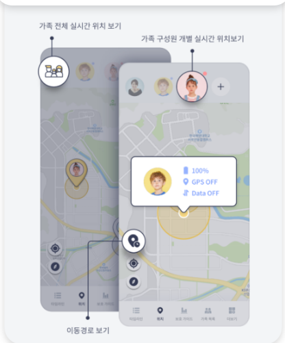 노약자의 위치 파악이나, 유해 환경 차단, 사용습관 관리를 할 수 있는 통신 부가서비스입니다.