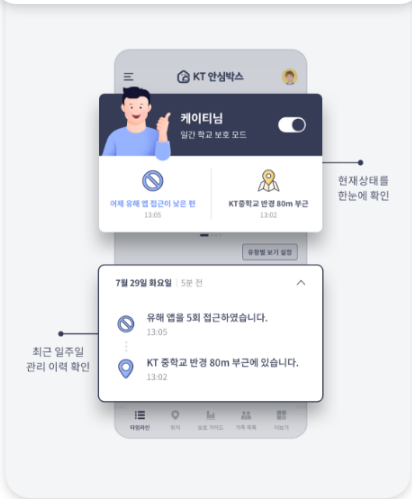 - 자녀나 어르신이 안심박스 서비스를 가입한 경우 보호자(부모 등)가 안심박스 앱을 필수로 설치해야 합니다.