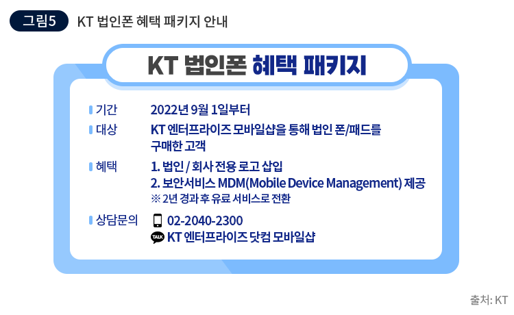- 기업 고객에게는 로고 삽입 서비스와 MDM(Mobile Device Management) 보안 서비스를 2년간 무료로 제공하여 정보 유출 방지 및 관리 효율성을 높입니다.