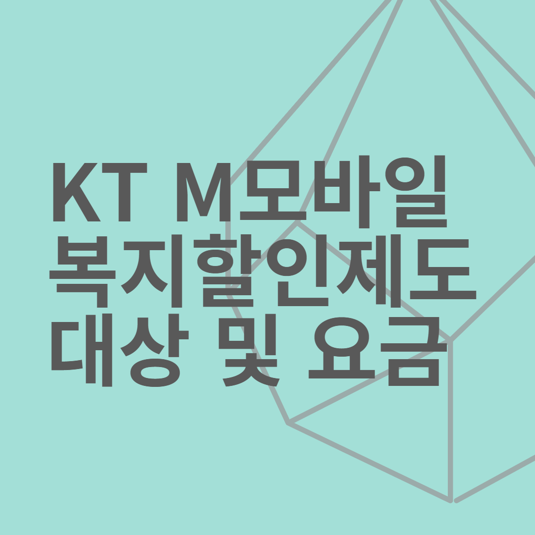 KT M모바일(알뜰폰)의 복지할인 요금제는 장애인, 국가유공자, 기초생활수급자, 차상위계층 등 복지 대상자를 위해 제공되는 할인 요금제입니다. 이 요금제는 기본 요금 감면과 함께 데이터, 음성통화, 문자 서비스 등을 저렴하게 이용할 수 있도록 설계되었습니다.