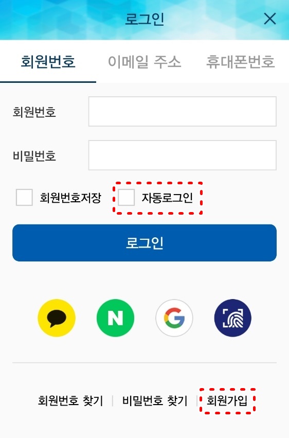 회원 가입 후 처음 로그인 시 '자동로그인'에 체크해 놓으면 나중에 열차 시간 확인 및 표 확인 때 유리합니다.