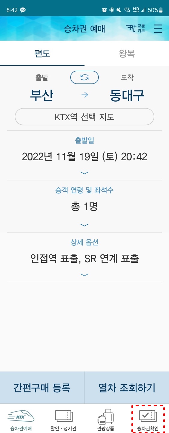 아래와 같이 할인 요금이 표시되면 예약이 잘 된 것입니다(승차권 가격이 할인 전 가격보다 낮게 나옴).