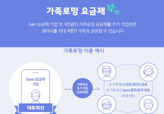 - 저렴한 요금제: 가족 회선 간 데이터 사용 시 저렴한 요금으로 데이터 로밍 제공