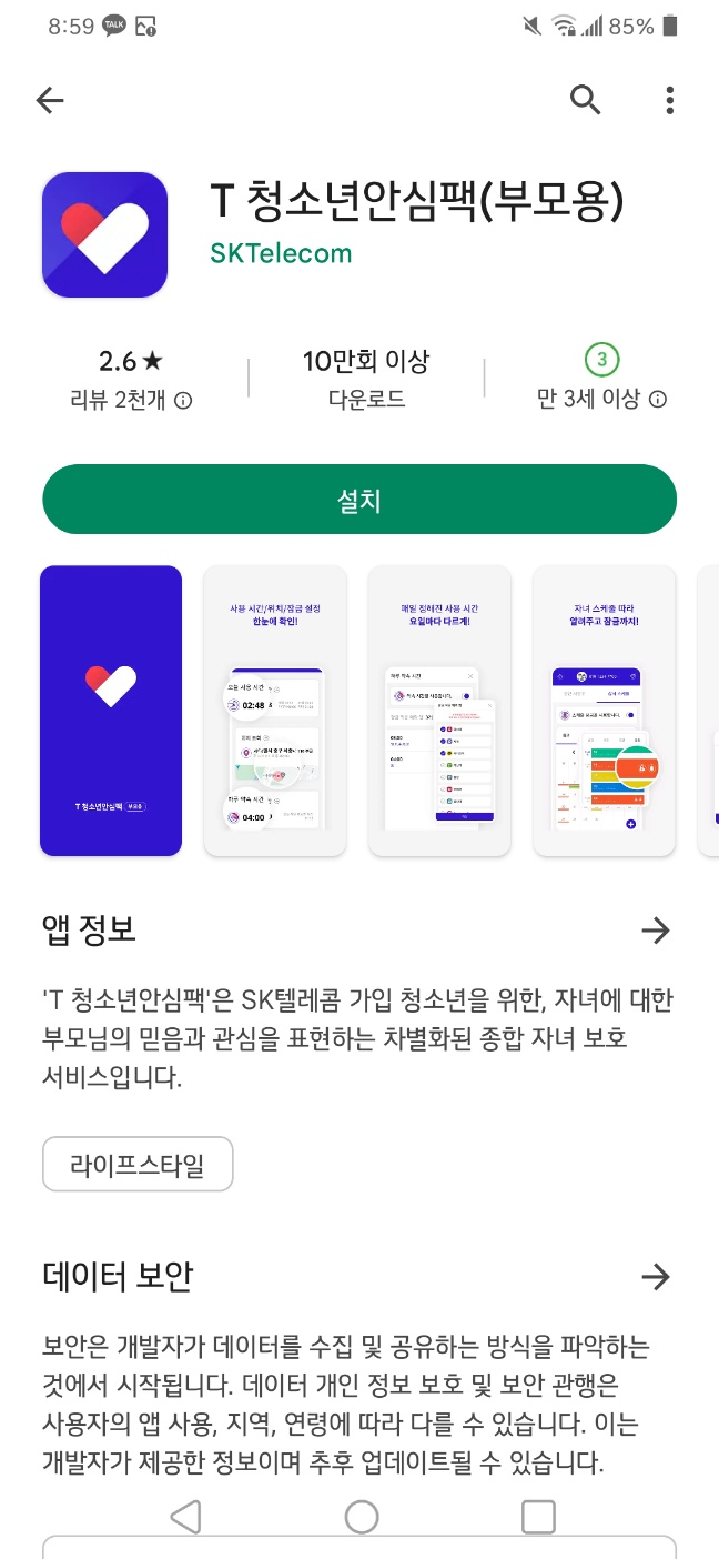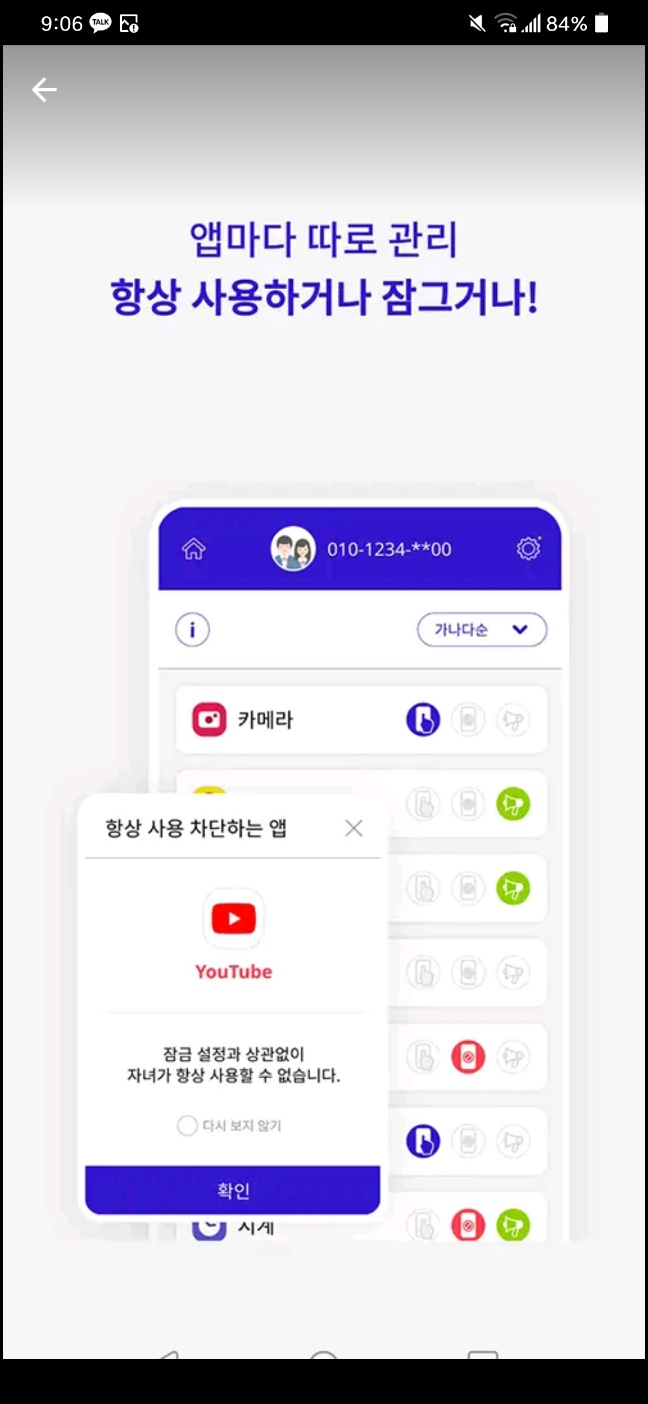 만19세 미만 자녀의 요금제, 데이터 및 앱 관리, 사용시간 설정이 가능한 서비스입니다.