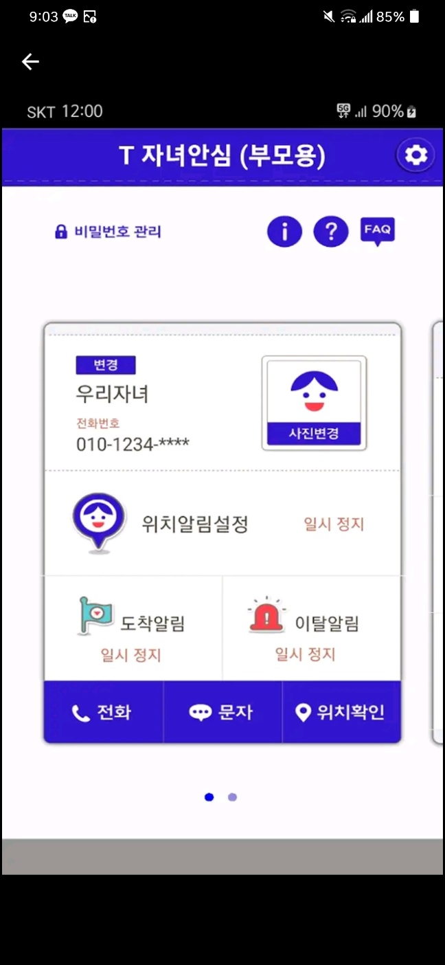 자녀는 반드시 SK 텔레콤 이용자여야 하나 보호자는 타 통신사 이용자여도 관계없습니다.