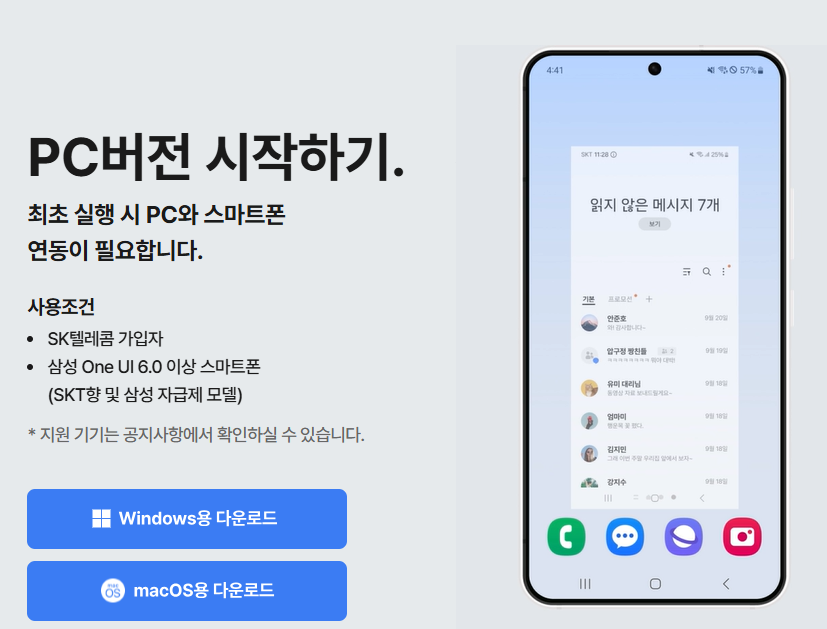 - 삼성 갤럭시 One UI 6 이상 단말기를 사용해야 합니다(아이폰 안됨).