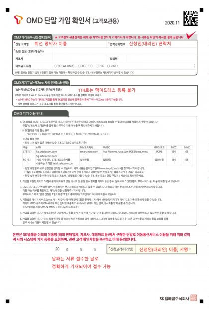 - OMD 단말 가입 확인서 작성
