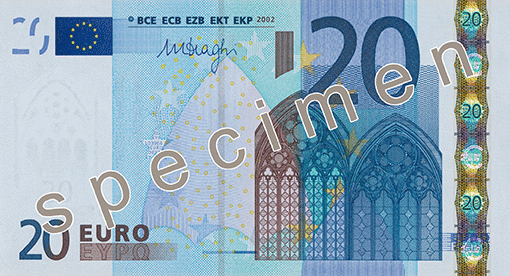 2002년 최초 버전의 유로화 구권은 신권에 비해 색이 흐리고 종이 질이 미끌미끌하고 약간 더 얇은 느낌이며 지폐 앞면 오른쪽의 홀로그램 띠가 없거나 모양이 다릅니다.
